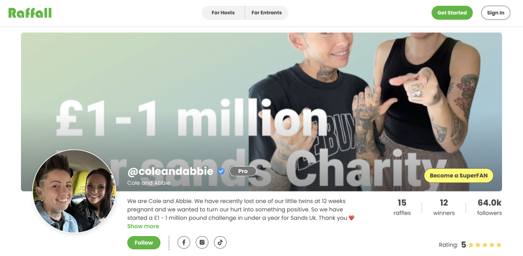 By using Raffall, they’ve been able to engage millions of followers in a meaningful way, support Sands UK through their £1 to £1 million challenge, and create excitement around prizes that feel accessible and fair — all while remaining fully compliant and transparent at every step.